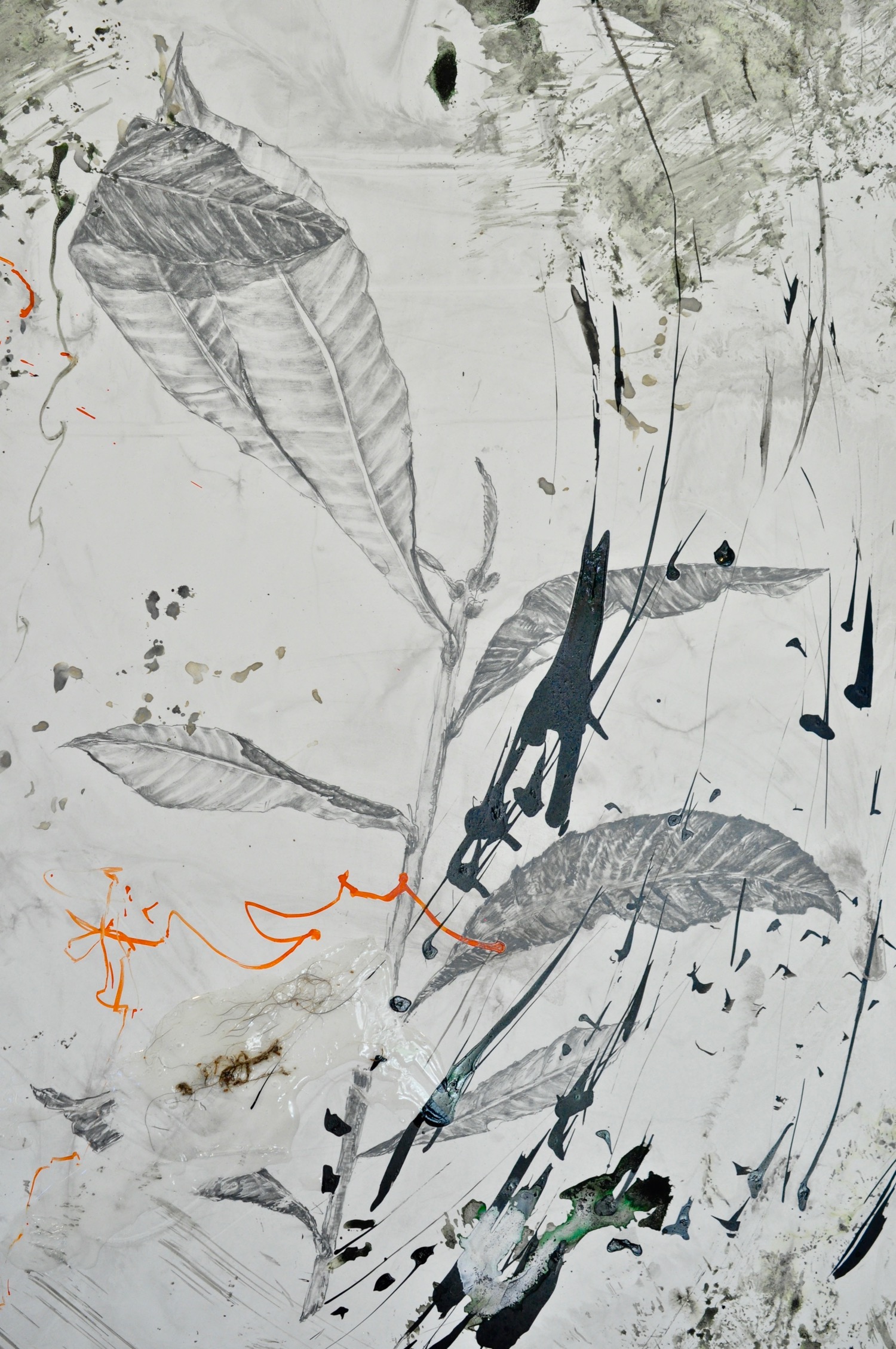 This project is a composite portrait of the City of San Jose, told over the span of a year using the city's own plant waste. Beginning in June, 2017, each month brought me to a new neighborhood to collect yard waste from the ubiquitous piles that accumulate on our city streets. In addition to collecting the material which became the mark-making tools, I also collected impressions of each neighborhood, gleaning words and plants.